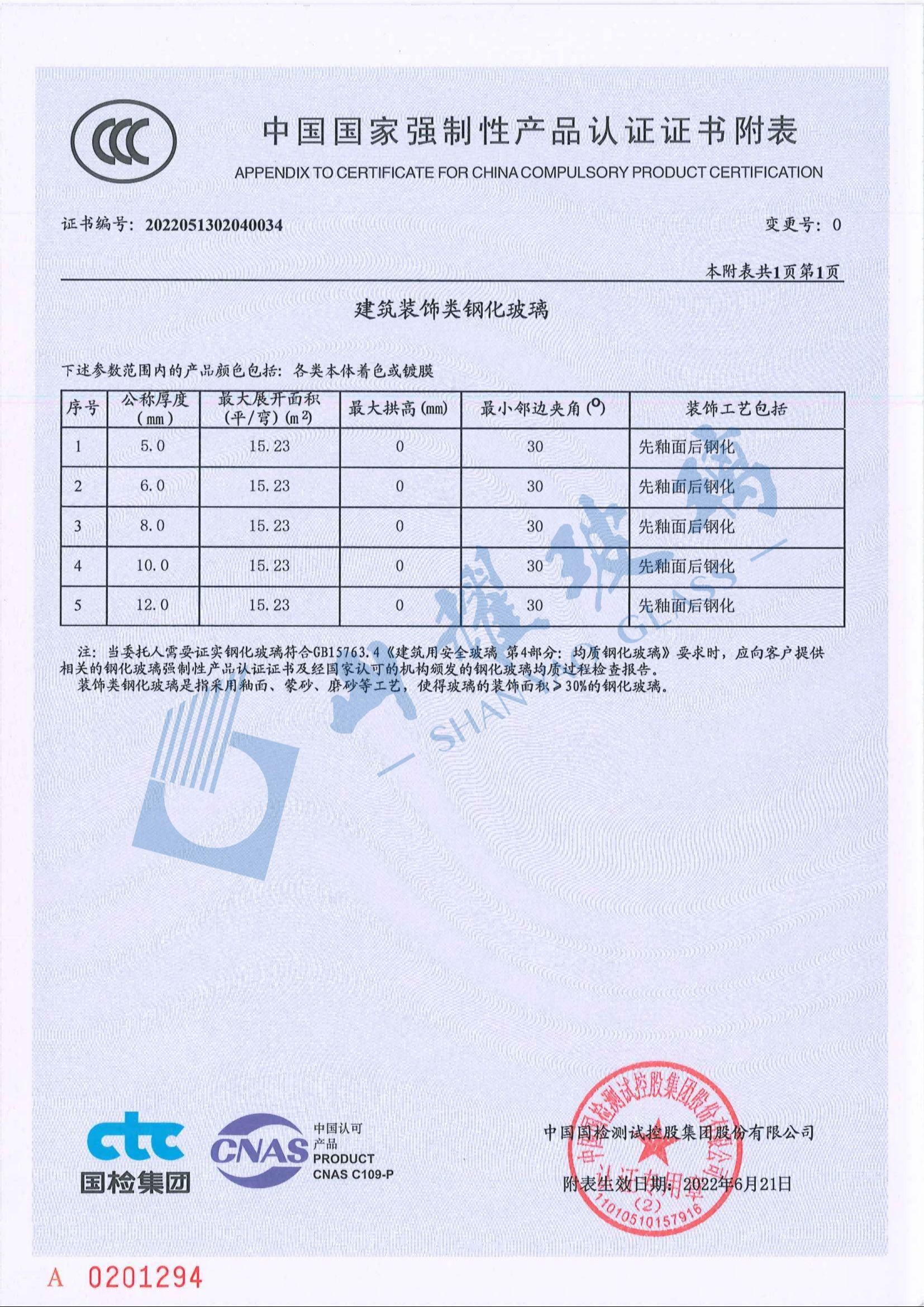 2021年度中國加工玻璃30強企業證書