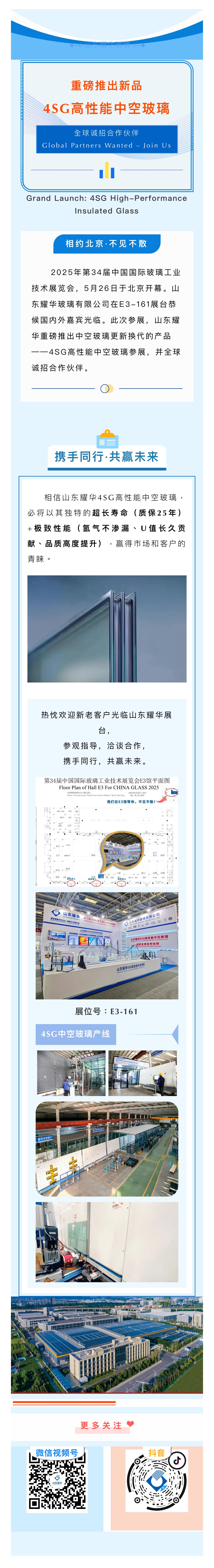 第34屆中國(guó)玻璃展丨山東耀華重磅推出新品—4SG高性能中空玻璃, 并全球誠(chéng)招合作伙伴
